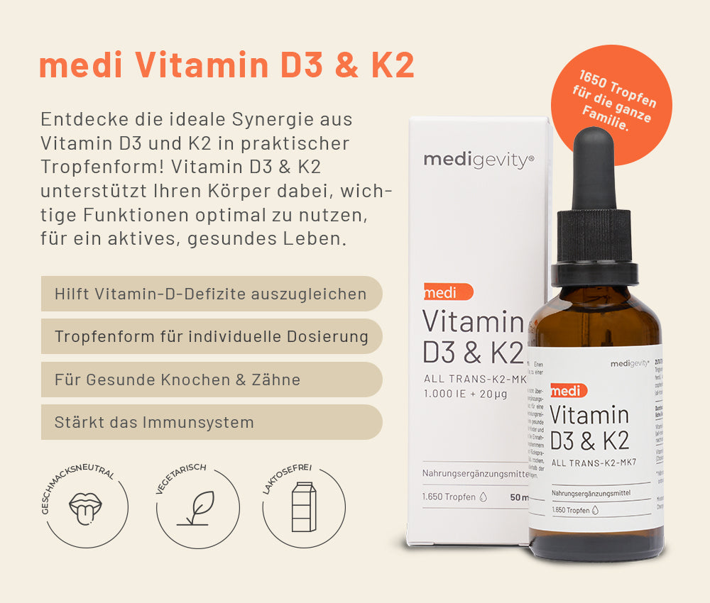 • Knochen & Immunsystem – mit Vitamin D3 + K2, die gemeinsam für starke Knochen und eine stabile Abwehrkraft sorgen.