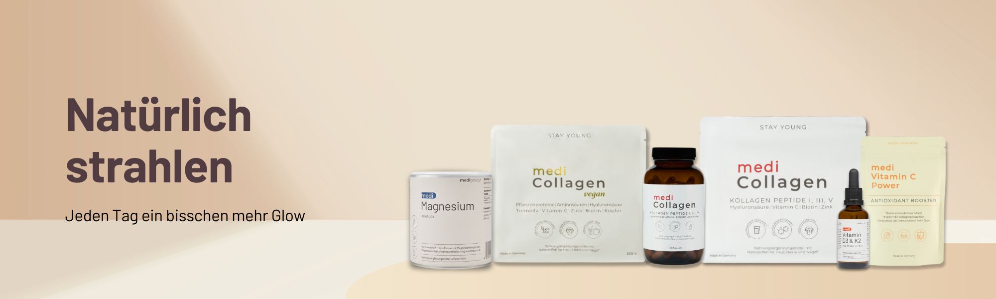 Alle Produkte von medigevity sind darauf ausgelegt, den Körper auf Zellebene zu unterstützen und seine natürlichen Regenerationsmechanismen zu fördern – für mehr Energie, Balance und Lebensqualität im Alltag.