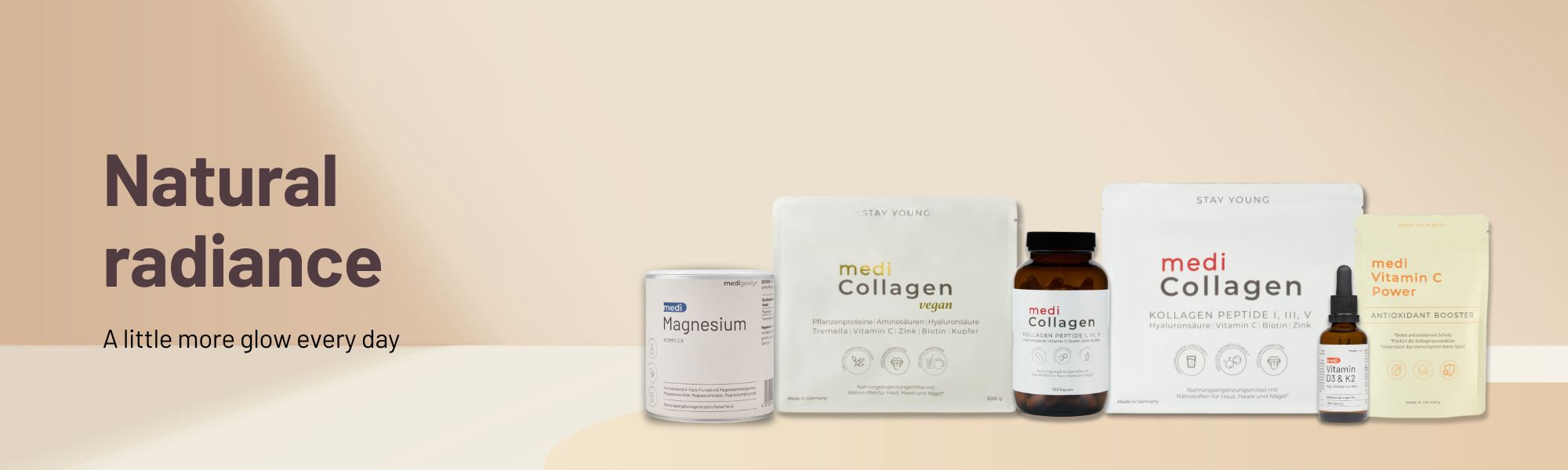 Our mission is to provide the body with precisely the nutrients that optimally support it in every phase of life – for vitality, mental strength and sustainable well-being.Medigevity stands for scientifically based nutritional supplements that positively influence the aging process and strengthen the body's natural functions.